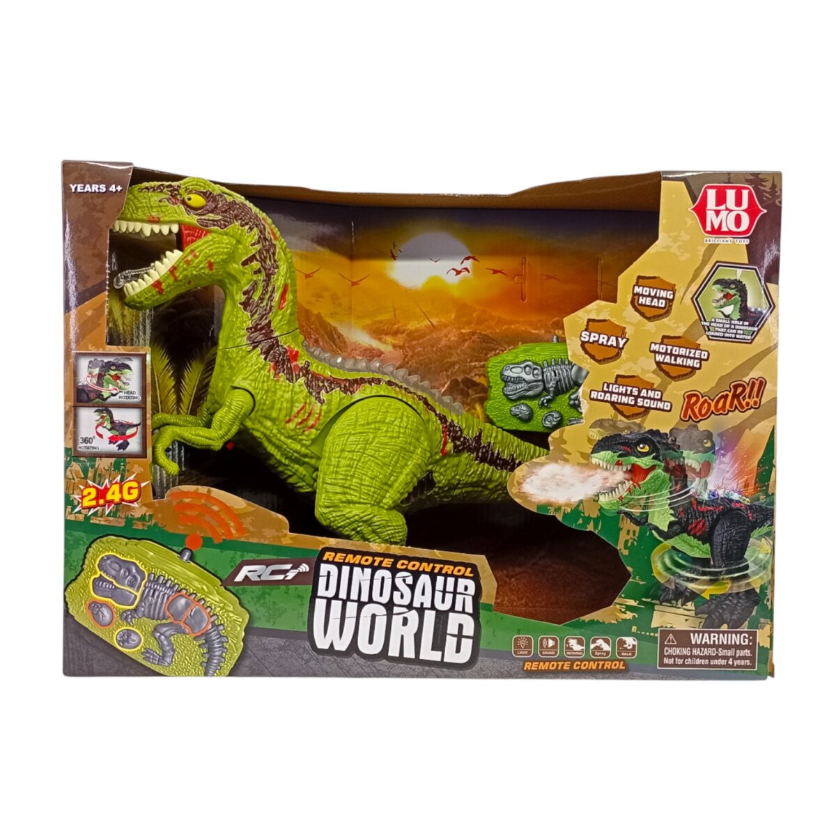 Luminoso Dinosaur World Remote Control Toy – Ultimate Walking Dino with Lights, Roaring Sounds, Mist for Kids 4+